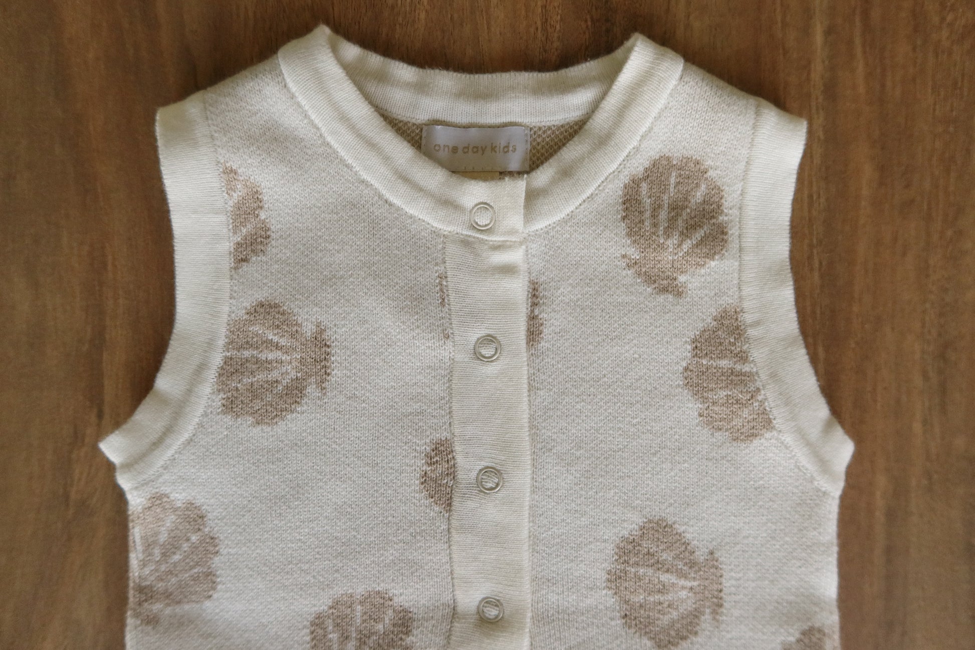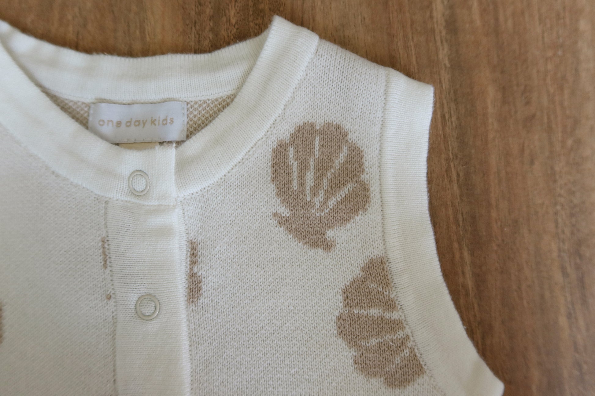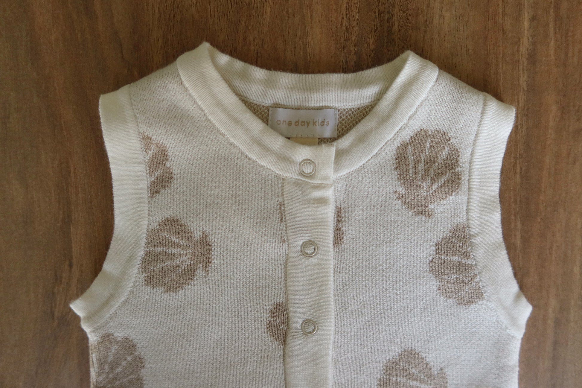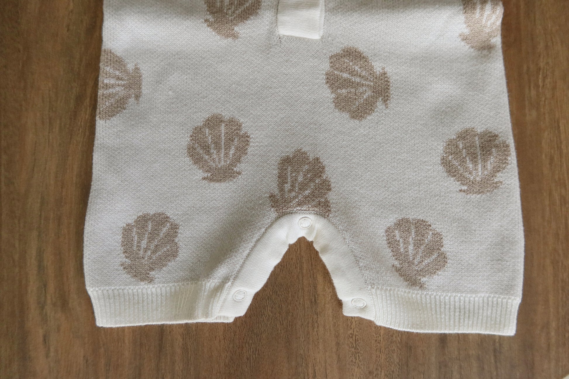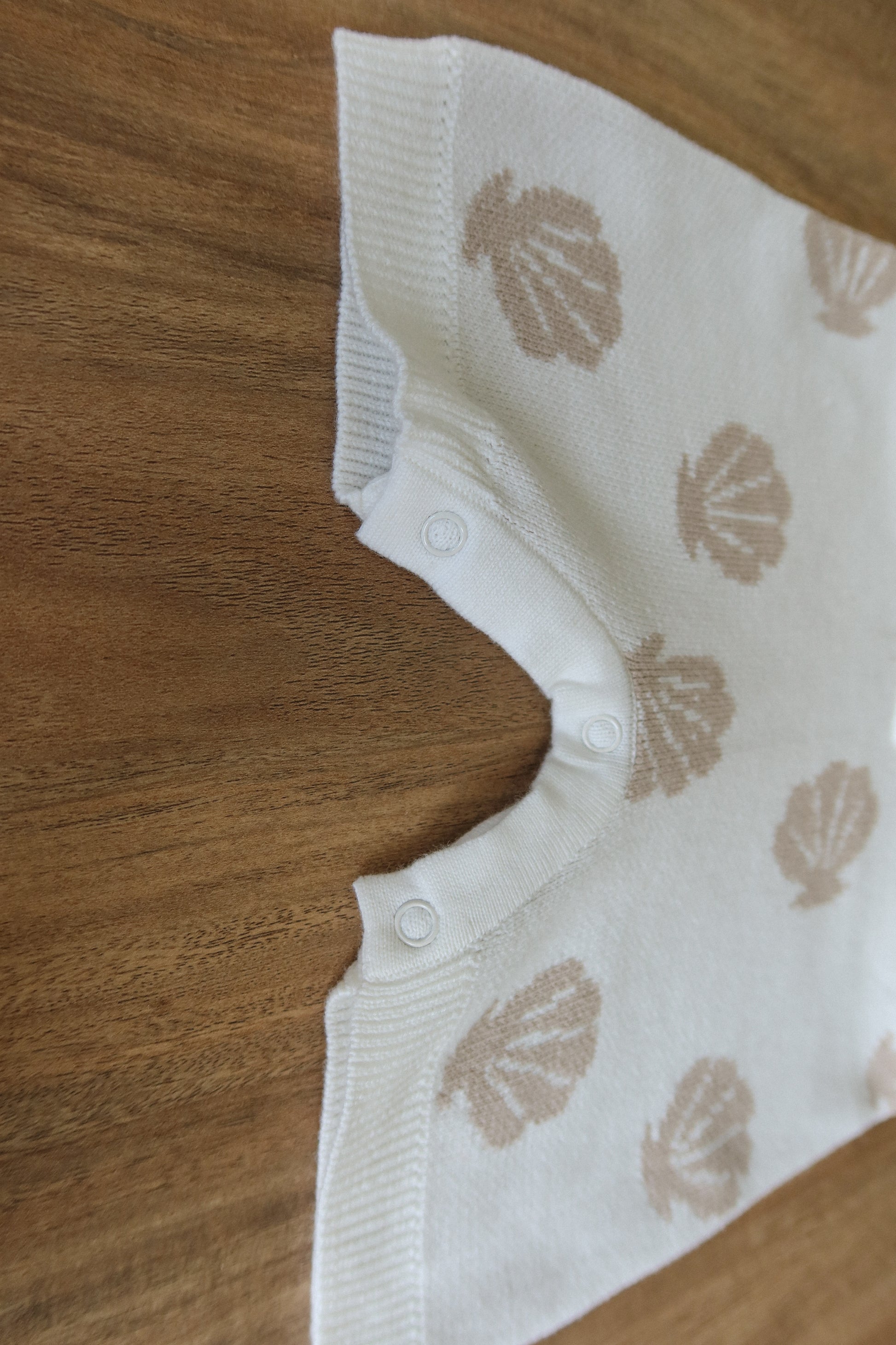 Stay cool and cute with our sleeveless seashell knit romper, made with buttery-soft cotton knit for breathable comfort. Featuring a button-down front and snaps at the bottom for quick diaper changes, this piece is both practical and adorable. The subtle seashell print brings beachy elegance to everyday wear.